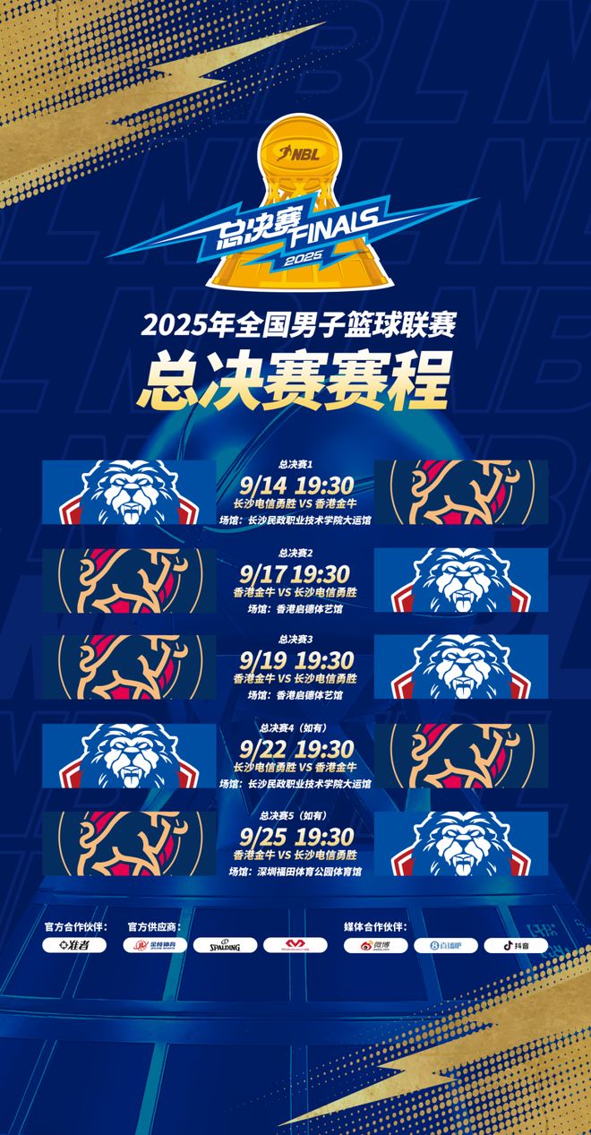 总决赛依旧采取五场三胜制,以1-2-1-1的主场排布方式进行。首场比赛于9月14日率先在长沙主场打响,最终香港金牛87-78先下一城。
