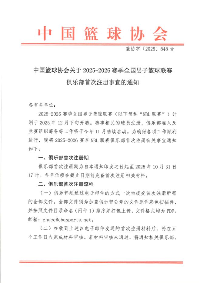 「一周刺猬话题」近日,中国篮球协会发布了2025-2026赛季全国男子篮球联赛俱乐部首次注册事宜的通知。与以往不同,通知中提到“2025-2026赛季全国男子篮球联赛(以下简称“NBL联赛”)计划于2025年12月下旬开赛。赛事相关的球员注册、俱乐部准入及竞赛组织筹备等工作将于今年11月陆续启动。