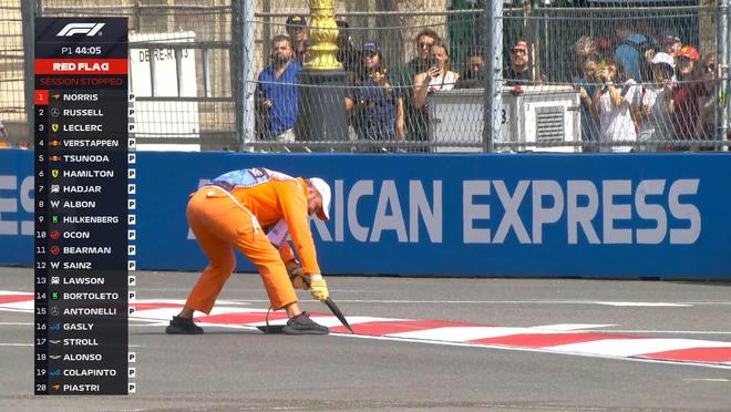 红旗!赛道的最后一弯出现碎片,需要马修上赛道进行清理;