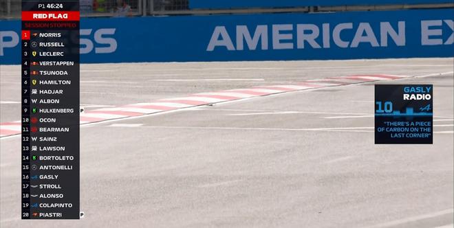 一练停表,两台迈凯伦全场最快,勒克莱尔排在第3,两台红牛排在第6&第7;
