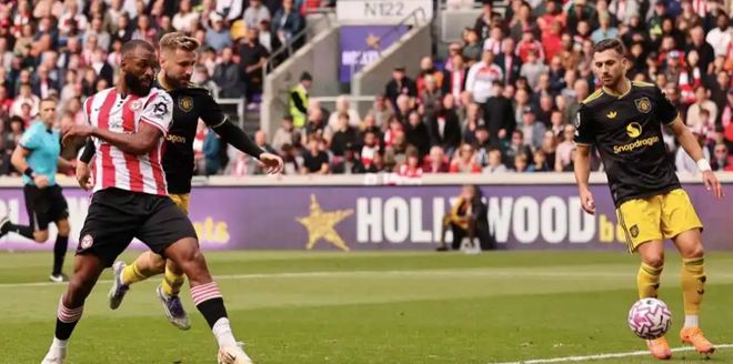 英超前5轮,曼联2胜1平2负拿到7分,排在第11位。布伦特福德1胜1平3负积5分,排在倒数第4位。无论从排名还是身价,曼联都占优。但没想到的是,开场仅8分钟,曼联的球门就宣告失守。达尼洛传给库尼亚被抢断,亨德森后场长传直接形成单刀,伊戈尔·蒂亚戈爆射,直接将球打进死角。0比1,曼联落后。第20分钟,曼联后防线再度遭到惩罚:布伦特福德一脚简单的长传再次打穿曼联的防线,巴因德尔飞身扑出对方的传中,伊戈尔·蒂亚戈近距离破门梅开二度,曼联则霉开二度。第26分钟,曼联一波三折扳回一球:舍什科连续3次攻门,先是头球被挡出,接着右脚垫射,还是被扑出;舍什科左脚爆射终于破门。曼联1比2,这一比分保持到终场结束。