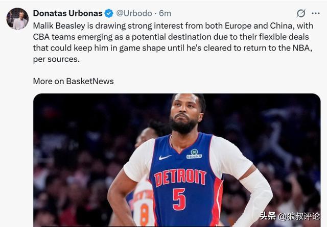 此前获活塞3年2400万合同!曝马利克比斯利有意前往CBA打球