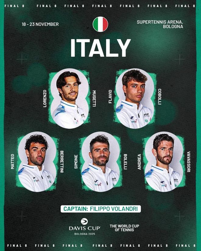 世界最高级别网球男子团体赛事迎来今年赛事的最高潮!卫冕冠军意大利队主场作战志在三连冠!角逐决赛的八个国家相继公布参赛阵容,世界第一阿尔卡拉斯、世界第三兹维列夫领衔多位网坛最顶尖球星,向2025世界团体冠军头衔发起全力冲击。