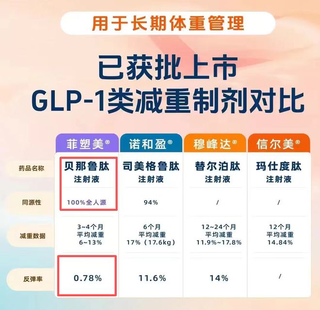 而贝那鲁肽是目前唯一一个100%全人源的GLP-1减重制剂,就是它的成分,和我们身体自己分泌的那个“饱腹信号”一模一样,分毫不差。