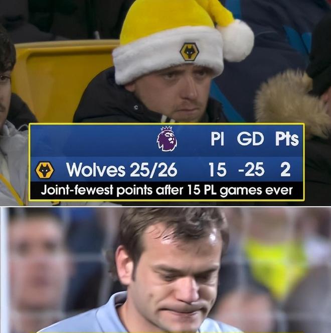 - 英超 | 高达90%降级概率!追平英超史上最差开局,15轮2平13负狼队被击溃