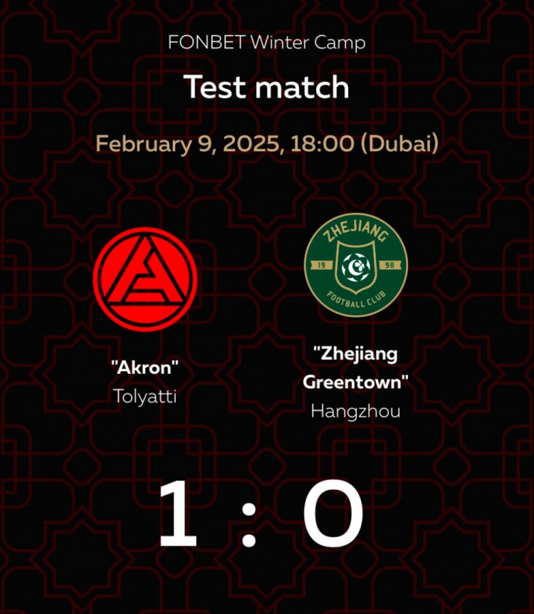 2月10日讯 北京时间昨晚,正在阿联酋冬训的浙江队,在热身赛中0-1不敌俄超球队阿克隆。本场比赛第36分钟,浙江队